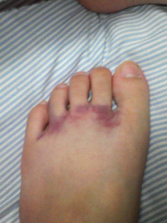 だんだん紫色が広がってるんで、明日また病院行きみたいです。